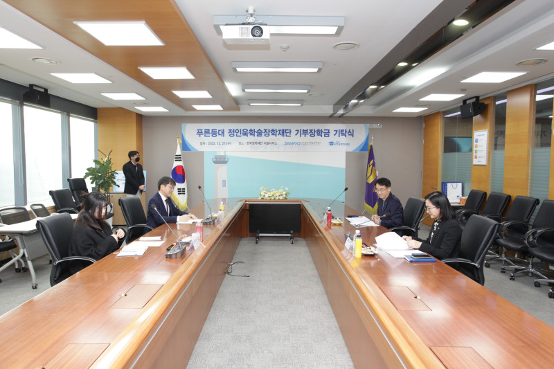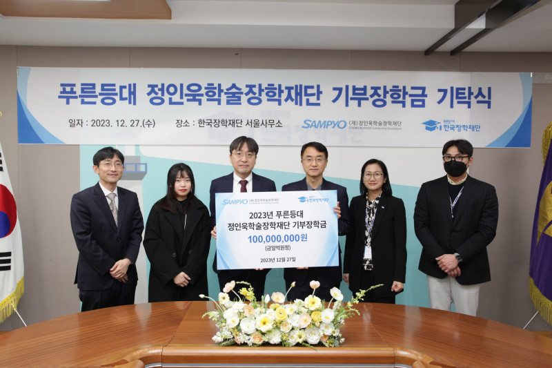 2023 한국장학재단 푸른등대 기부장학금 기탁식 2025-07-09 0 262 07.09 14:55 지난 2023년 12월 27일, 정인욱학술장학재단은 자립준비청년 대학원생들을 위한 장학금을 지원하고자 한국장학재단에 기부장학금을 기탁하였습니다. 전달 된 기부장학금은 한국장학재단의 푸른등대 기부장학사업을 통해 선정 된 자립준비청년 대학원생들에게 전달 될 예정입니다.